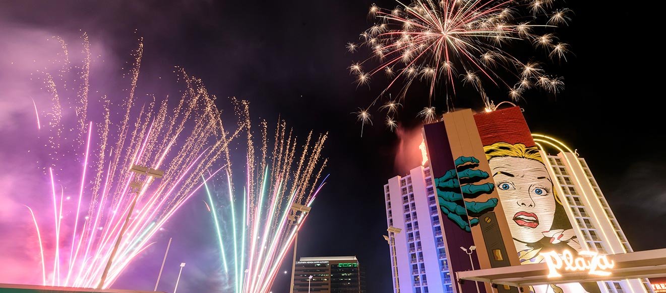 Plaza’s Welcome to the Weekend Summer Friday Fireworks is lighting up the sky above Downtown Las Vegas every Friday night at 9:15pm.